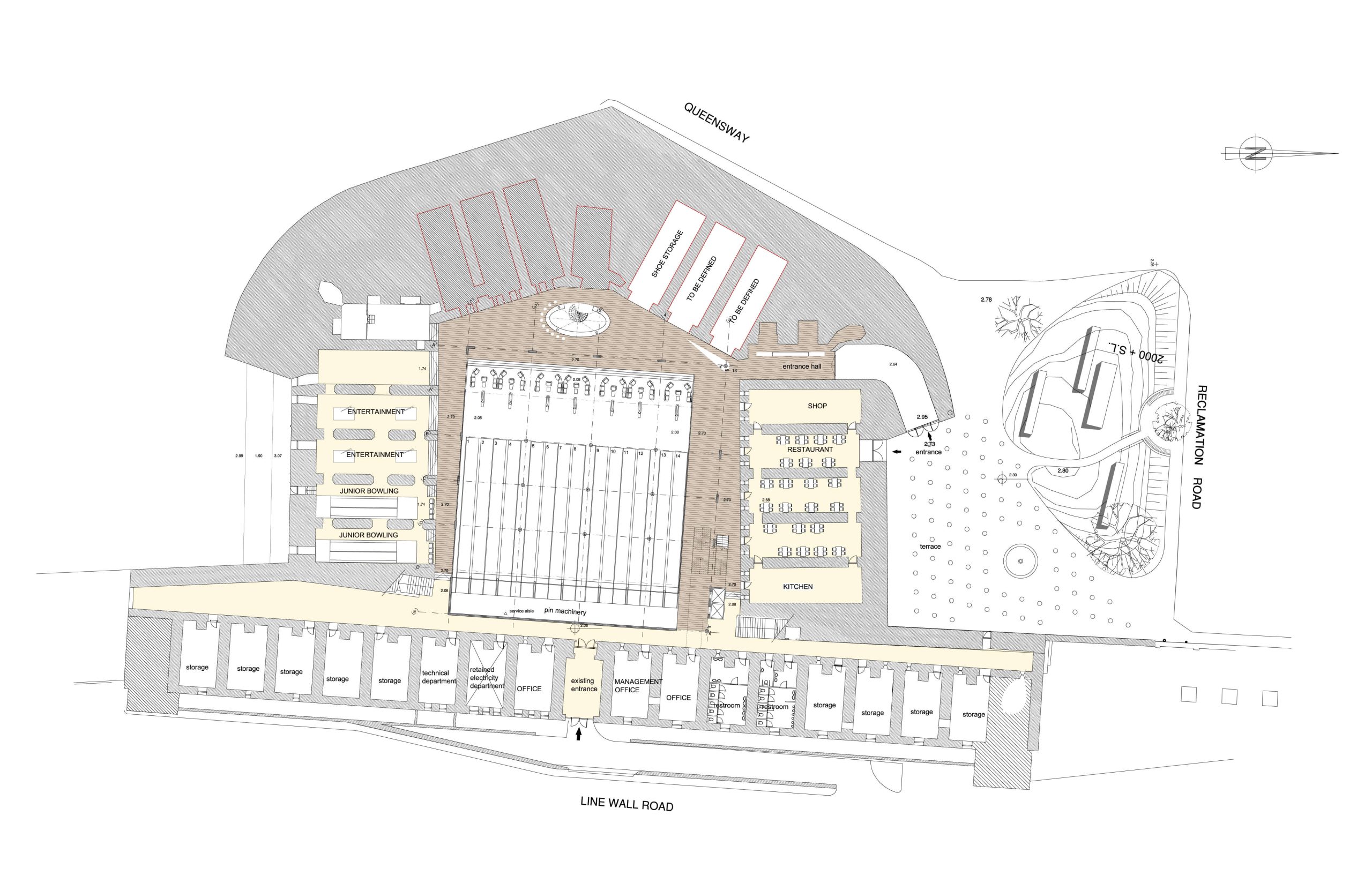 Program: Leisure center, skating ring, bowling, cinemas and restaurants
